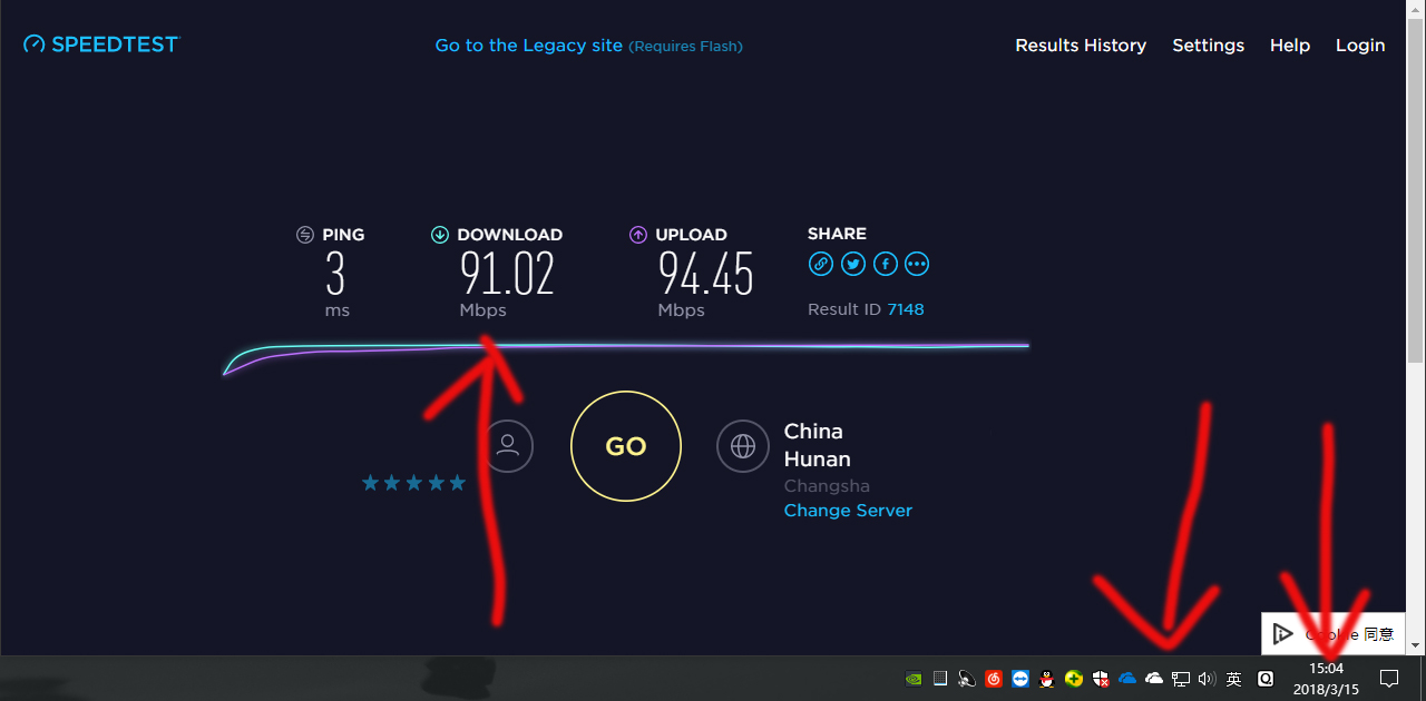 联通/电信测速 需要提交测速结果请满足以下要求:请用网线连接电脑,关闭无线不通过路由器/交换机,即 直接将网线插在编有 宿舍号的网线上/墙壁口测速结果截图必须体现当前网速结果,测速时间,网络标识如图 https://wxkd.zctmdc.cc/zb_users/upload/2018/03/201803181521306309377052.jpg 点击图片测速!联通50M测速结果电信24M测速结果